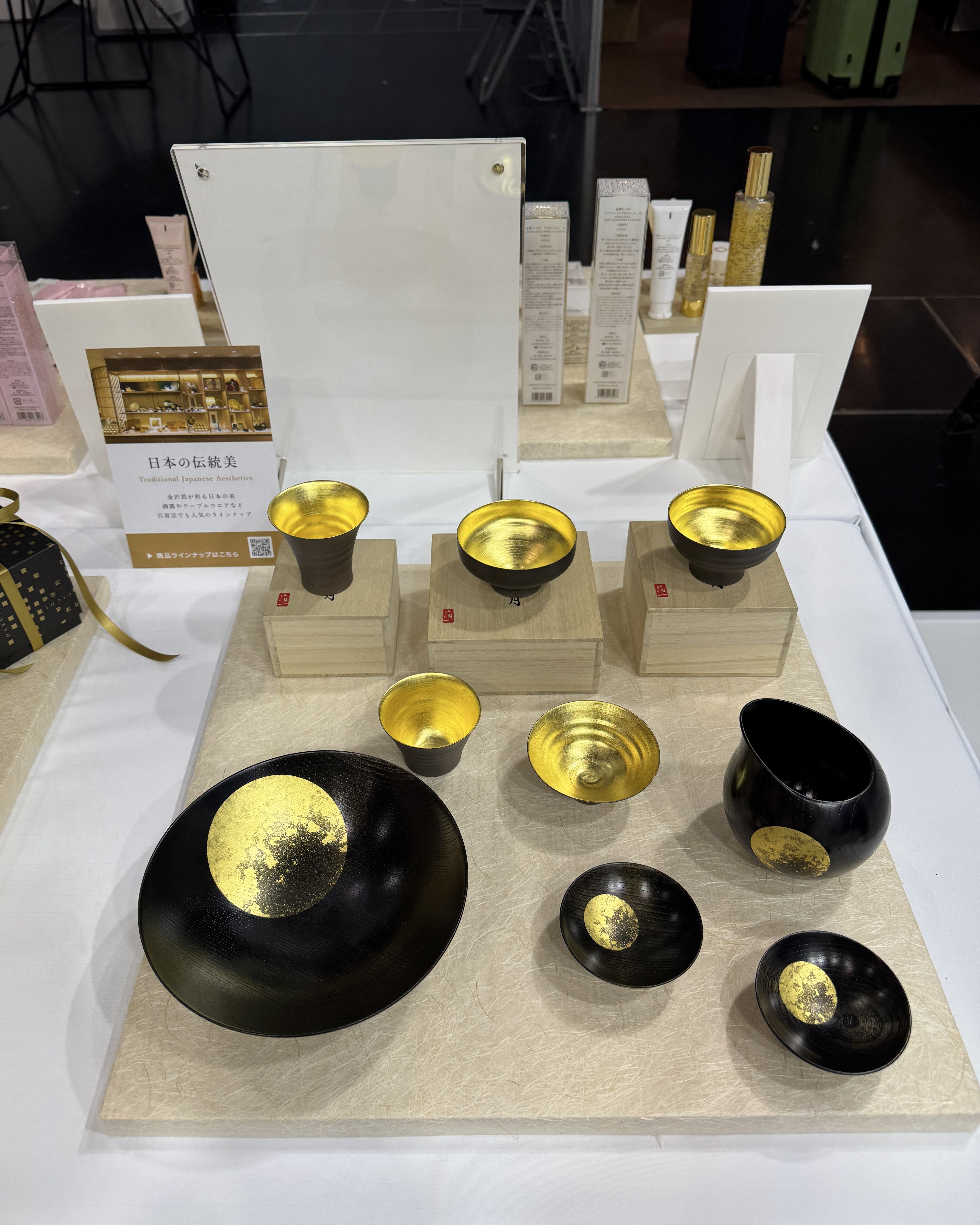 金沢箔の輝きと落ち着いた黒のコントラストで、高級感のある食卓を演出。