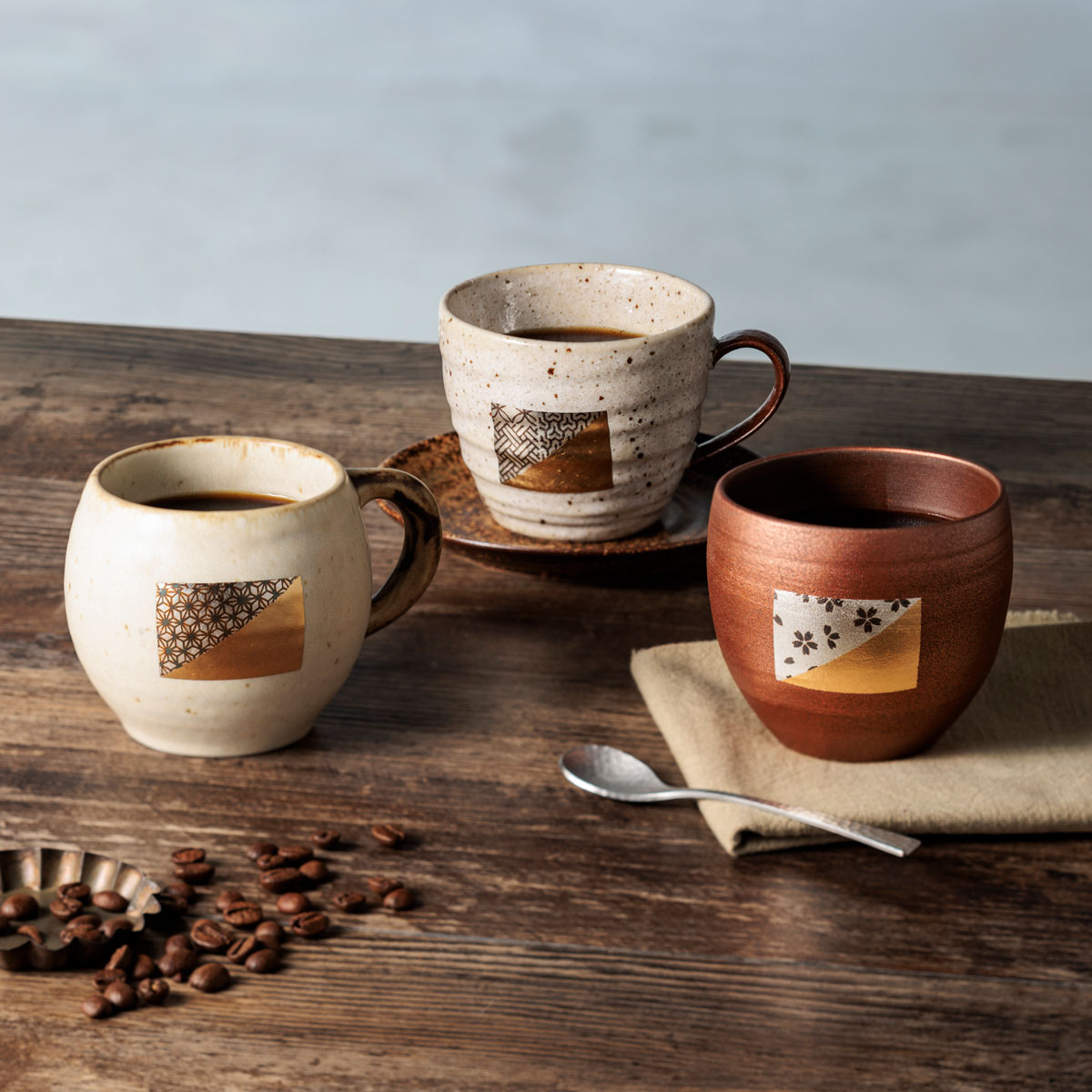| 素材 | 陶器(美濃焼) 箔の種類:真鍮箔、友禅箔(麻の葉)、友禅箔(さくら葉) |