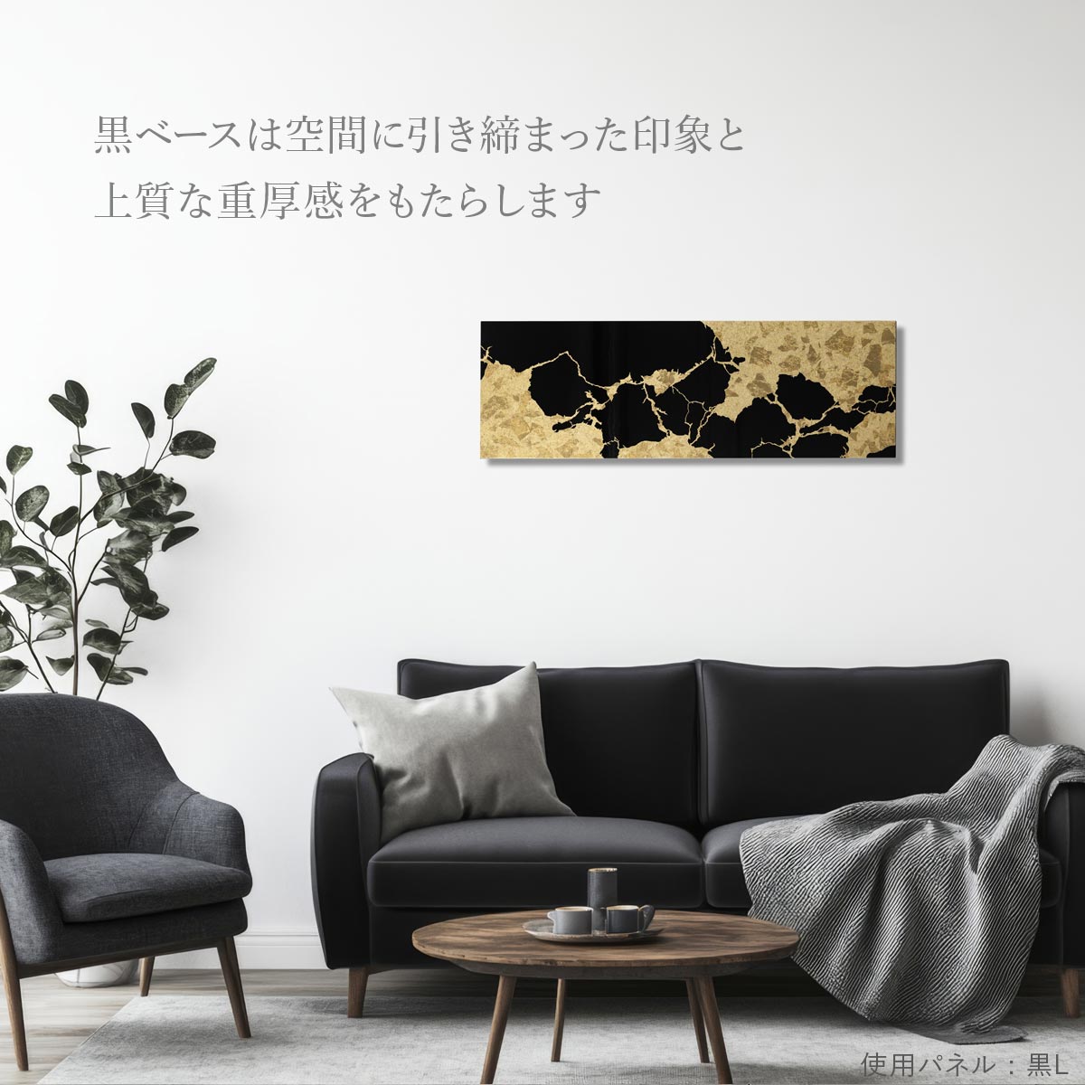 背景の黒ベースと箔の輝きが空間に引き締まった印象と上質な重厚感をもたらします。