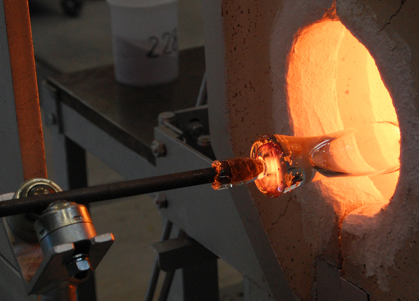 灼熱の坩堝(るつぼ)から吹き竿の先に巻き取られたガラスの素材に、息を吹き込みながら仕上げる伝統技法「宙吹きガラス」により、ガラス本来の自然な美しさを引き出しました。
