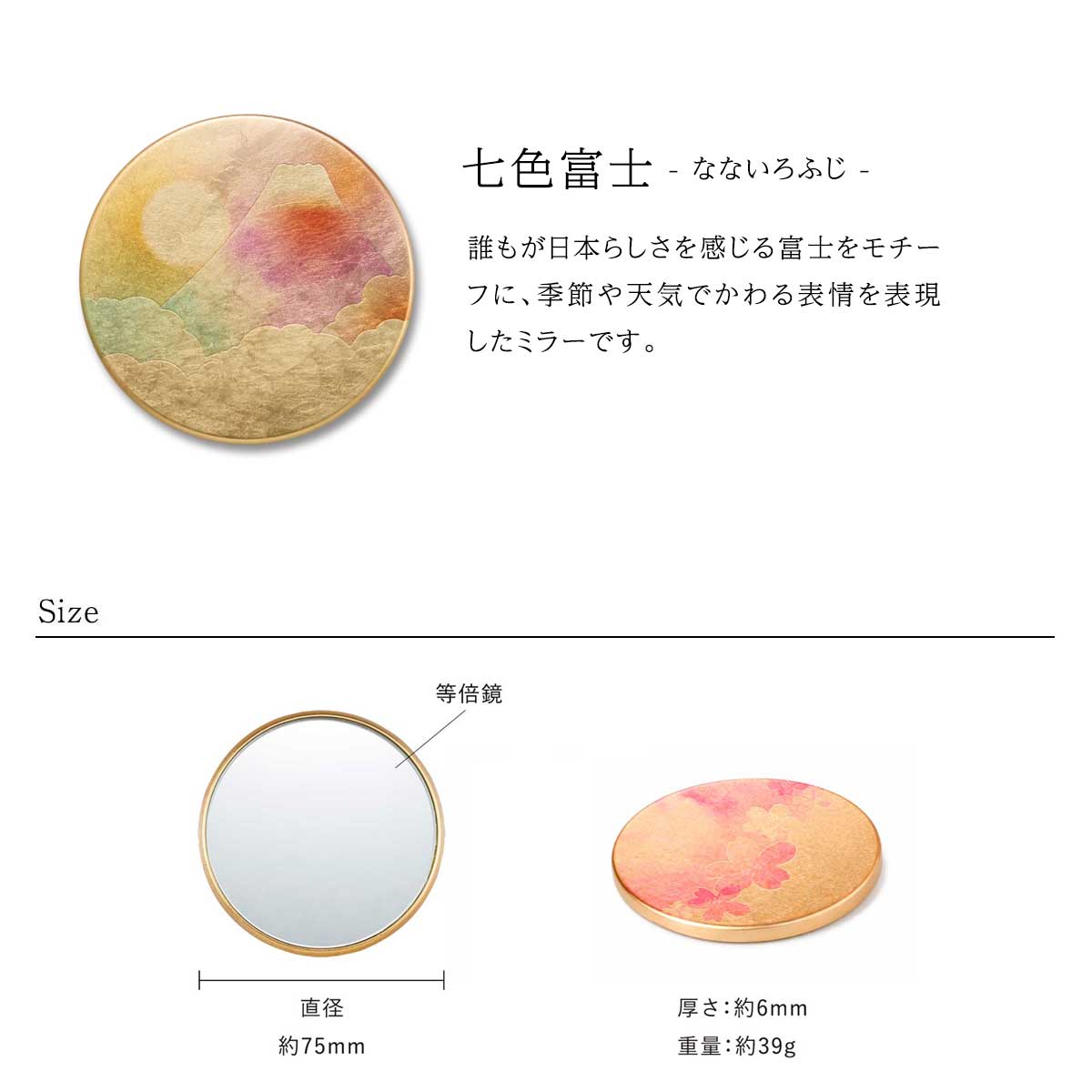 | 素材 | 〈本体〉合成漆器(ABS樹脂/ウレタン塗装仕上)、鏡、洋箔(真鍮箔) 〈ポーチ〉フェルト |