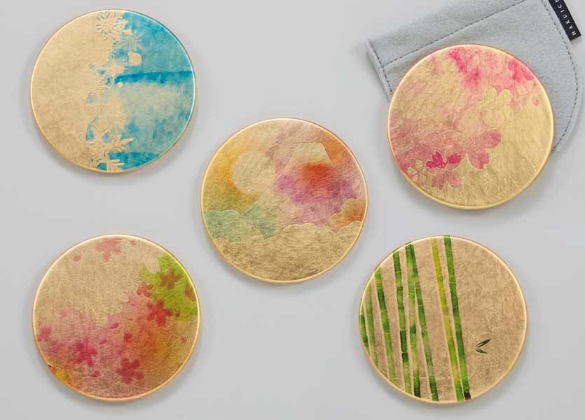 心のフィルターを通して観る日本の風景を、金沢箔がもたらす光のきらめきと、豊かな色彩の重なりで愛らしく表現した、持ち歩き使う度に日本を旅した時を感じていただけます。